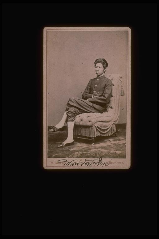 dedicatoria-Inglese-manoscritto a inchiostro-sul supporto secondario: verso-Sonapandit, Principe del Siam-Presented to H.R.H. The Duke of Genoa by and as a souvenir of H.R.H. Prince Sonapandit Bangkok Siam 9th - April 1881 | commerciale-tipografica-sul supporto secondario: recto: in basso-Martin M.-M. MARTIN SINGAPORE|documentaria-Orientale-manoscritto a inchiostro-sul supporto secondario: recto: in basso: al centro-[...]