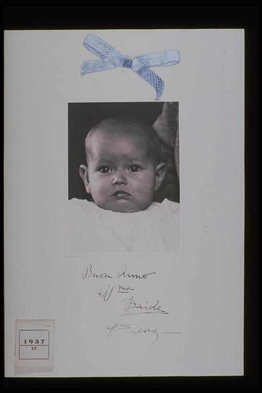 Nastro azzurro e calendario, con la scritta 1937/ XV, applicati sul supporto secondario.