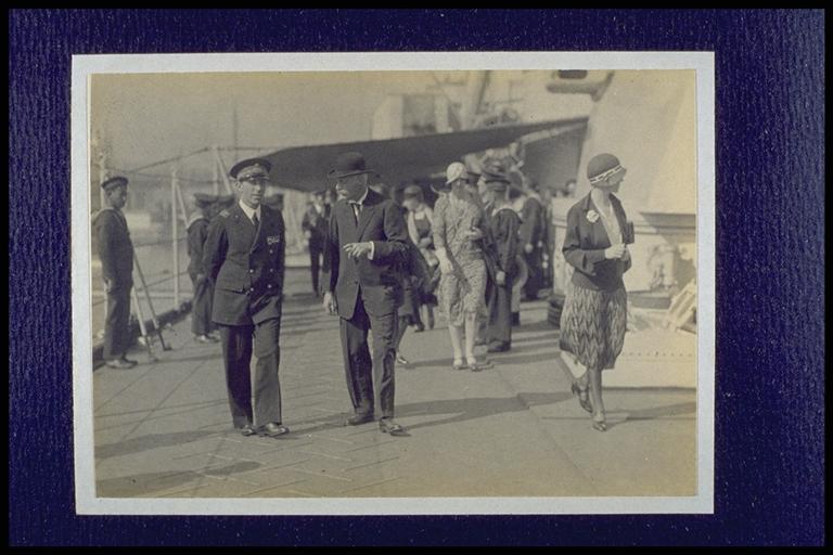 Ferdinando di Savoia, principe di Udine con visitatori sul pontile della R.N. Trento"